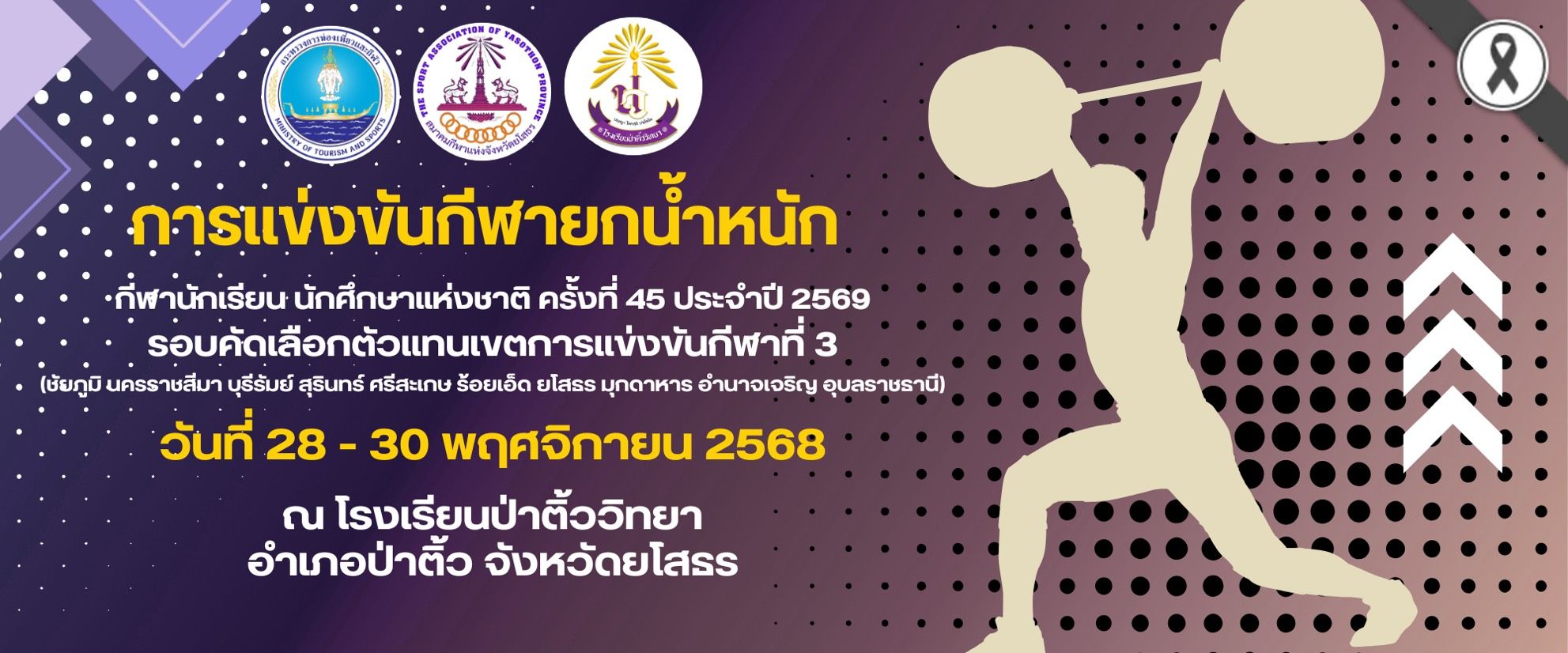 พิธีเปิดการแข่งขันยกน้ำหนัก กีฬานักเรียน นักศึกษาแห่งชาติ ครั้งที่ 45 รอบคัดเลือกตัวแทนเขตการแข่งขันกีฬาที่ 3 วันที่ 29 พ.ย. 2568