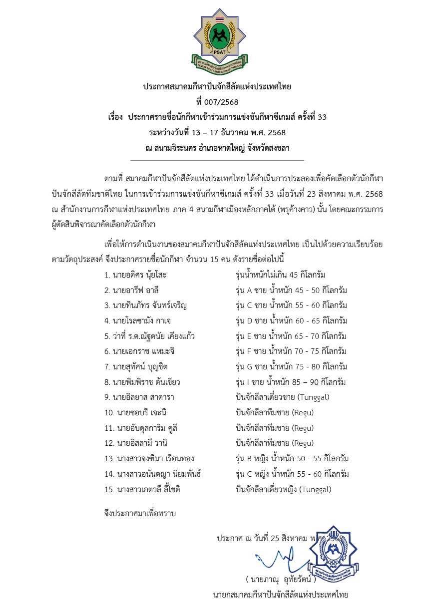 สมาคมกีฬาแห่งจังหวัดยโสธร ขอแสดงความยินดีกับ นายพิมพิราช ต้นเขียว ผ่านการคัดเลือกตัวแทนนักกีฬาทีมชาติไทยเข้าร่วมการแข่งขันกีฬาซีเกมส์ ครั้งที่ 33